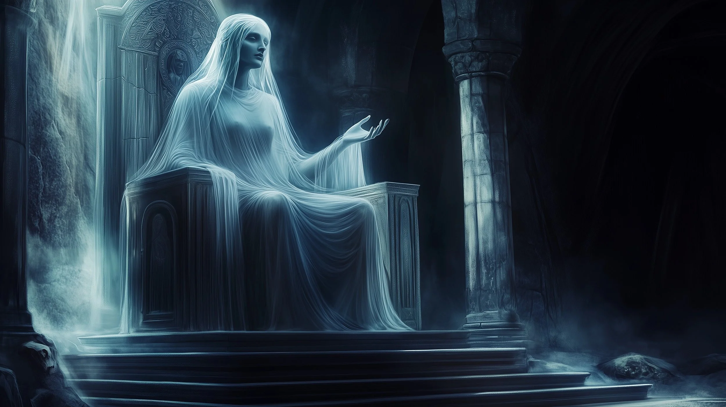 Cin-cal-Nea. Statyn av den förra väktarinnan återfinns i det gömda "Väktarinnornas kabinett".